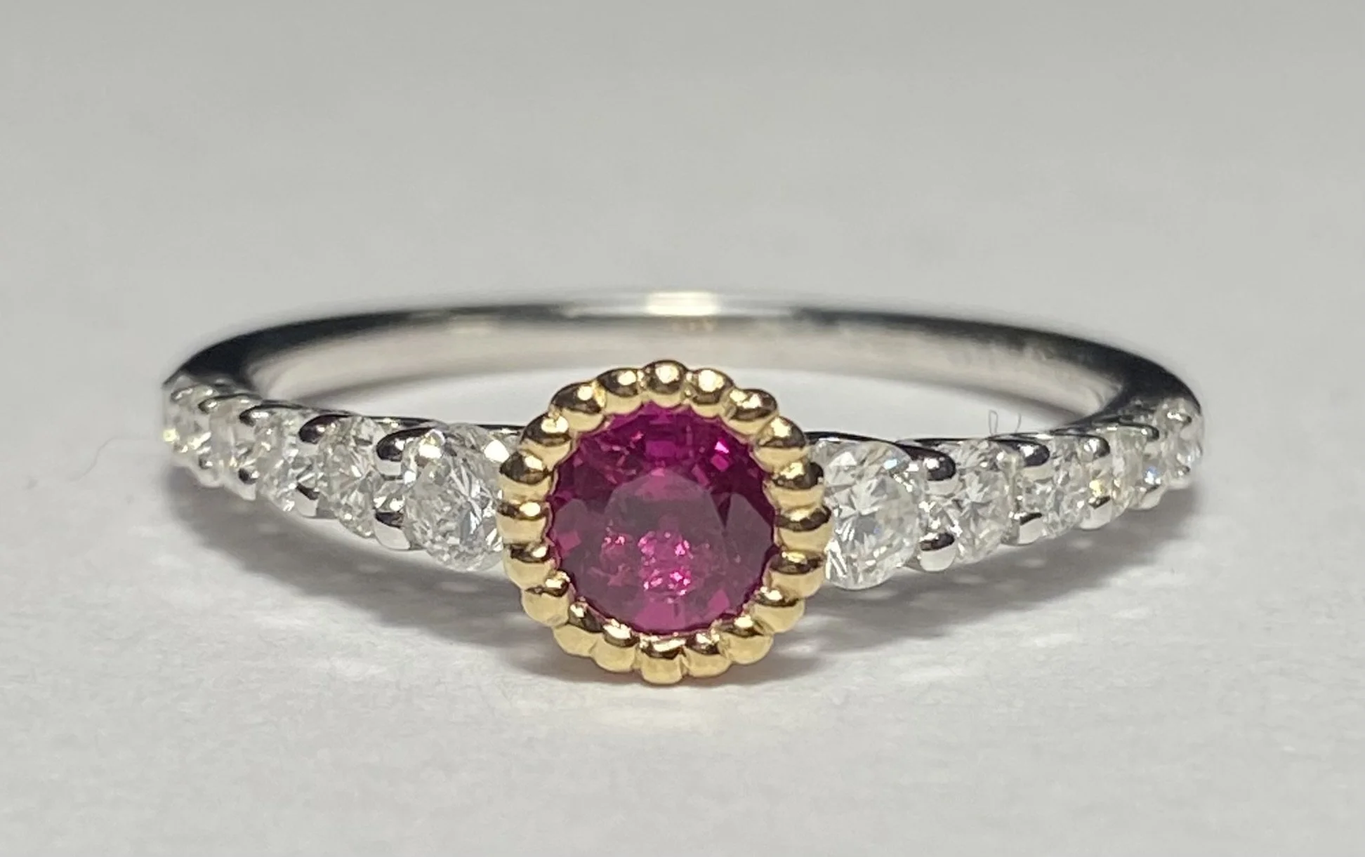 4.5mm ruby set in 14k yellow gold 14k white gold ring with 12 diamonds 0.44ctw $2020