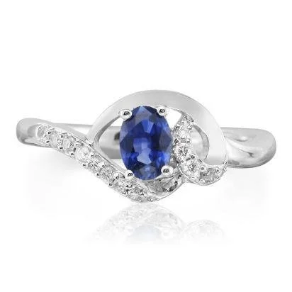 Blue sapphire 0.60ct oval set in 14k white gold 12 natural diamonds 0.98ctw $1925 DBA-68