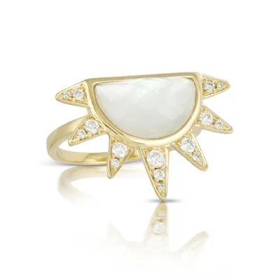 White topaz with mother of pearl backing, diamond ring 18k yellow gold 15 diamonds 0.23ctw $1750