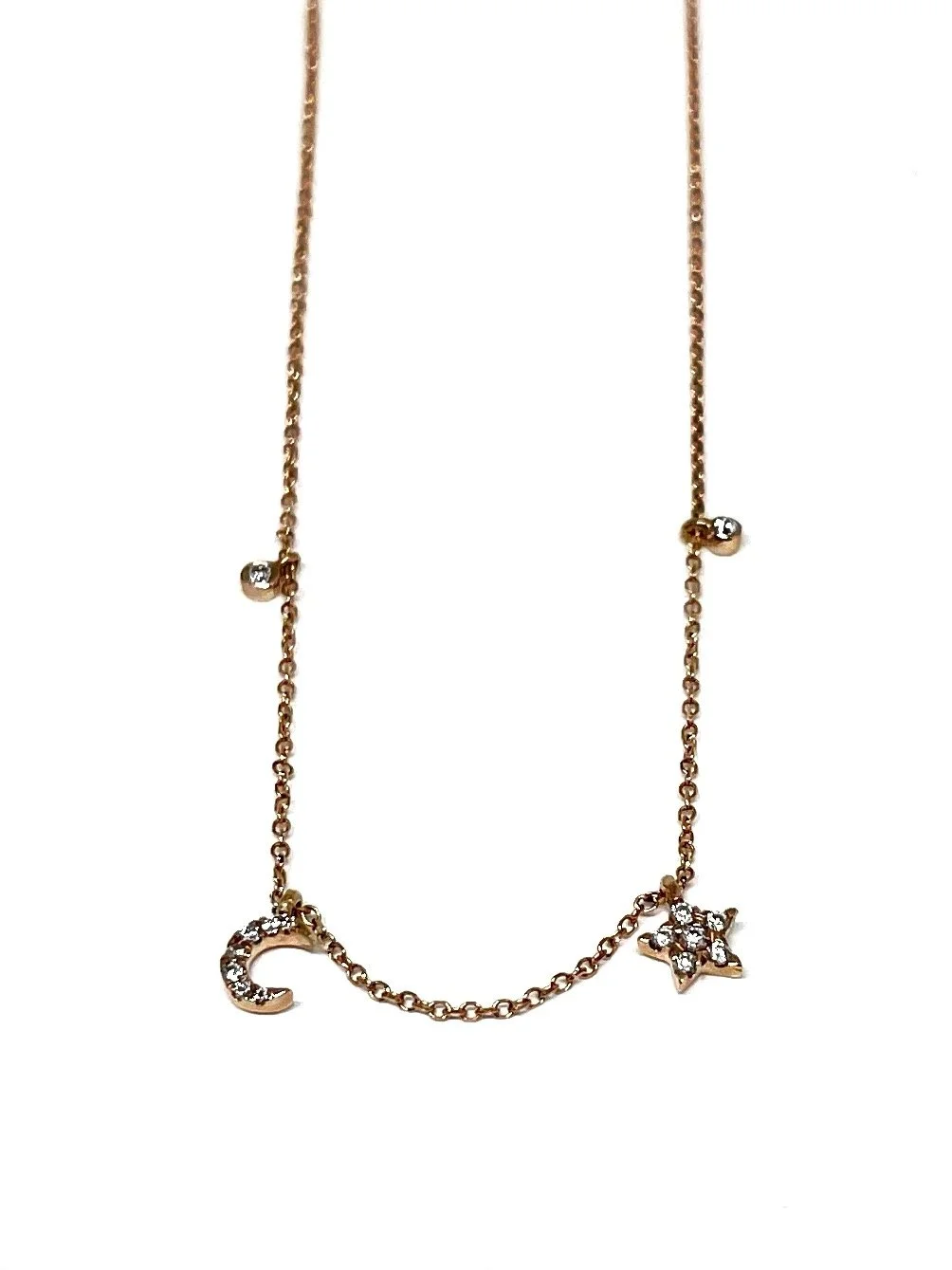 Our yellow gold diamond bar necklace($1,620) layered with a 4mm herringbone necklace($637.50), and a yellow gold diamond butterfly necklace($960) .