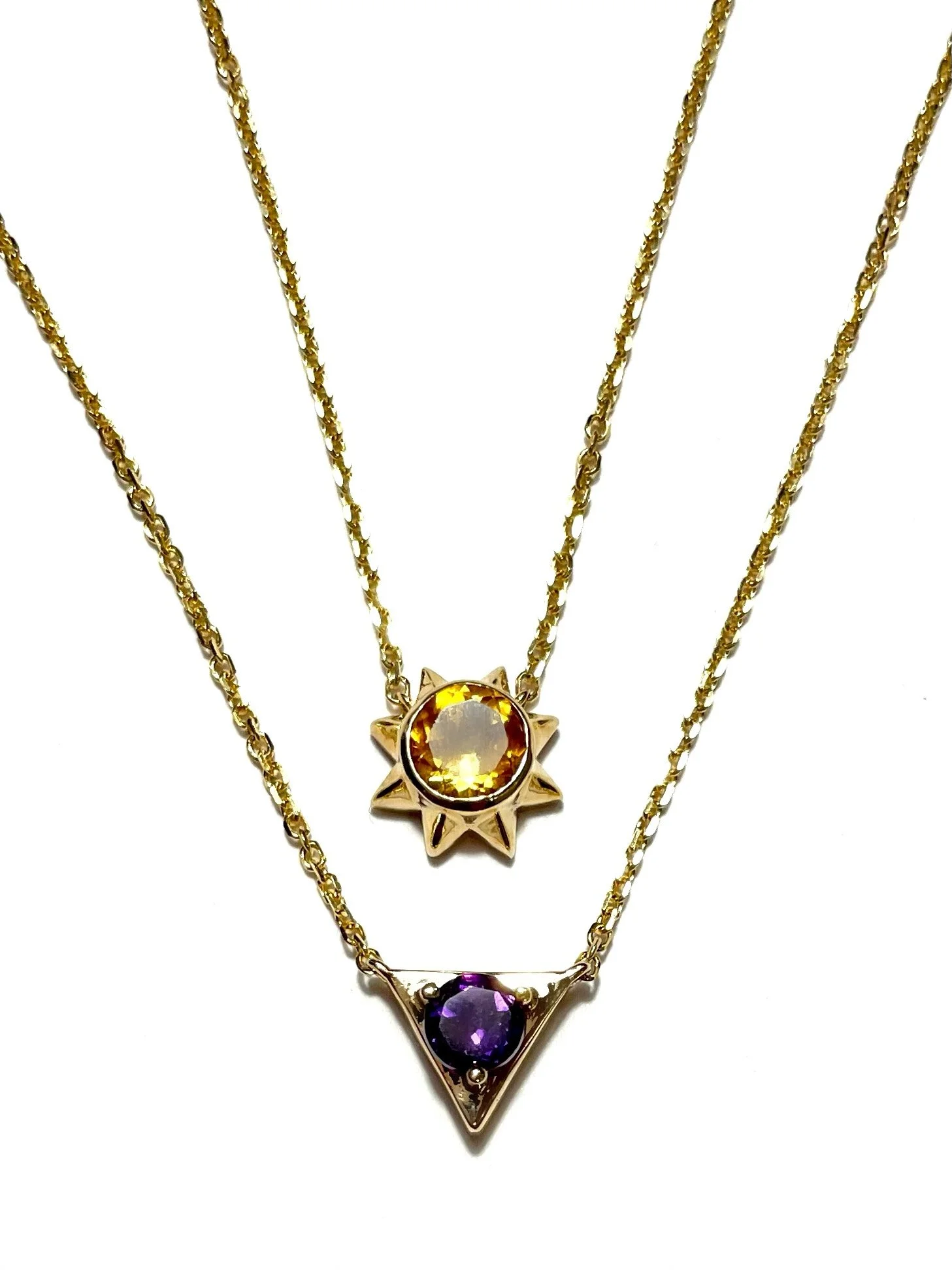 Our 4mm herringbone necklace($637.50) layered with a yellow gold diamond pendant ($2,125 ), and yellow gold link chain($550).